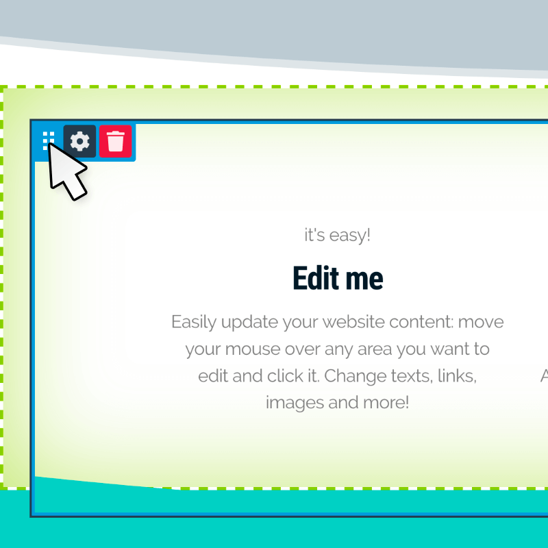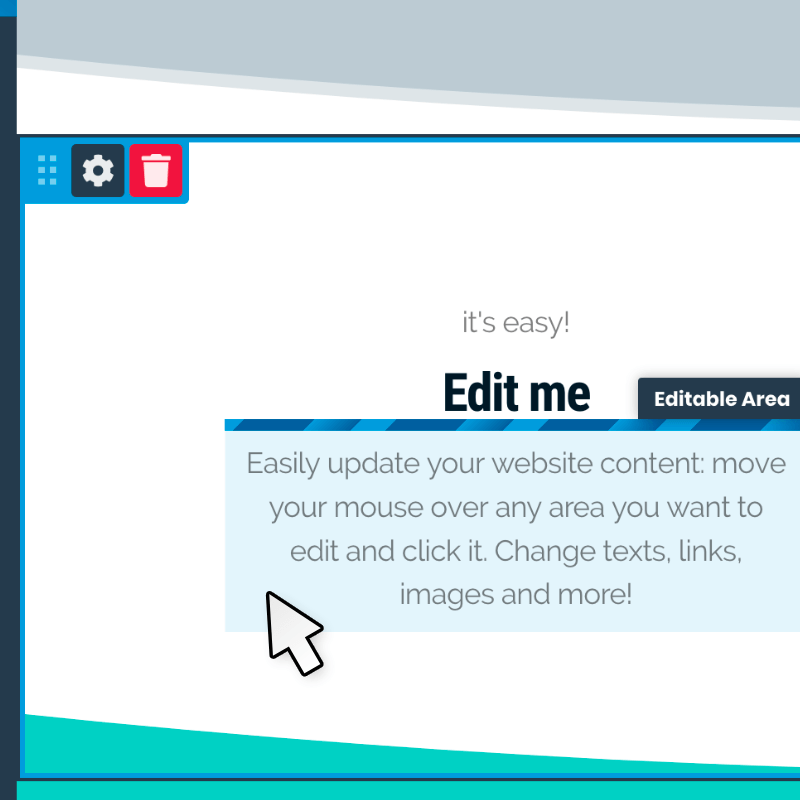 La mayoría de los elementos de tu sitio web son editables. Simplemente mueve el mouse sobre el área que deseas cambiar y haz clic para comenzar a editar: texto, imagen. vídeos o una aplicación como Galería o Tienda