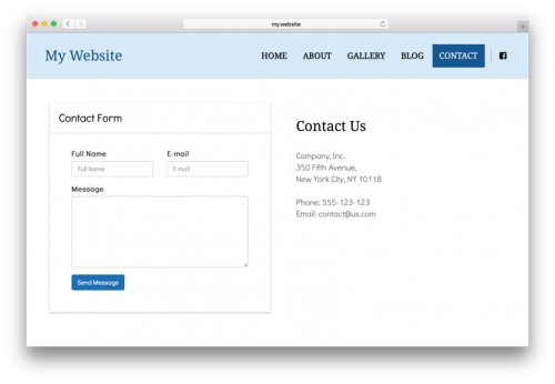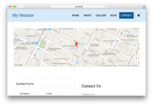 El mapa de ubicación es otro módulo, que se coloca de forma predeterminada en cada nuevo sitio web. Simplemente coloca una marca en el mapa a medida que escribe: solo con la dirección de la empresa.