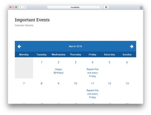 Marca todos los eventos importantes para tu empresa y compártelos con los visitantes de tu sitio web.