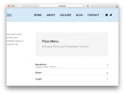 - Editor de plantillas incorporado con 6 diseños de temas disponibles, 6 estilos de menú disponibles, cientos de fuentes y miles de posibilidades de personalización.